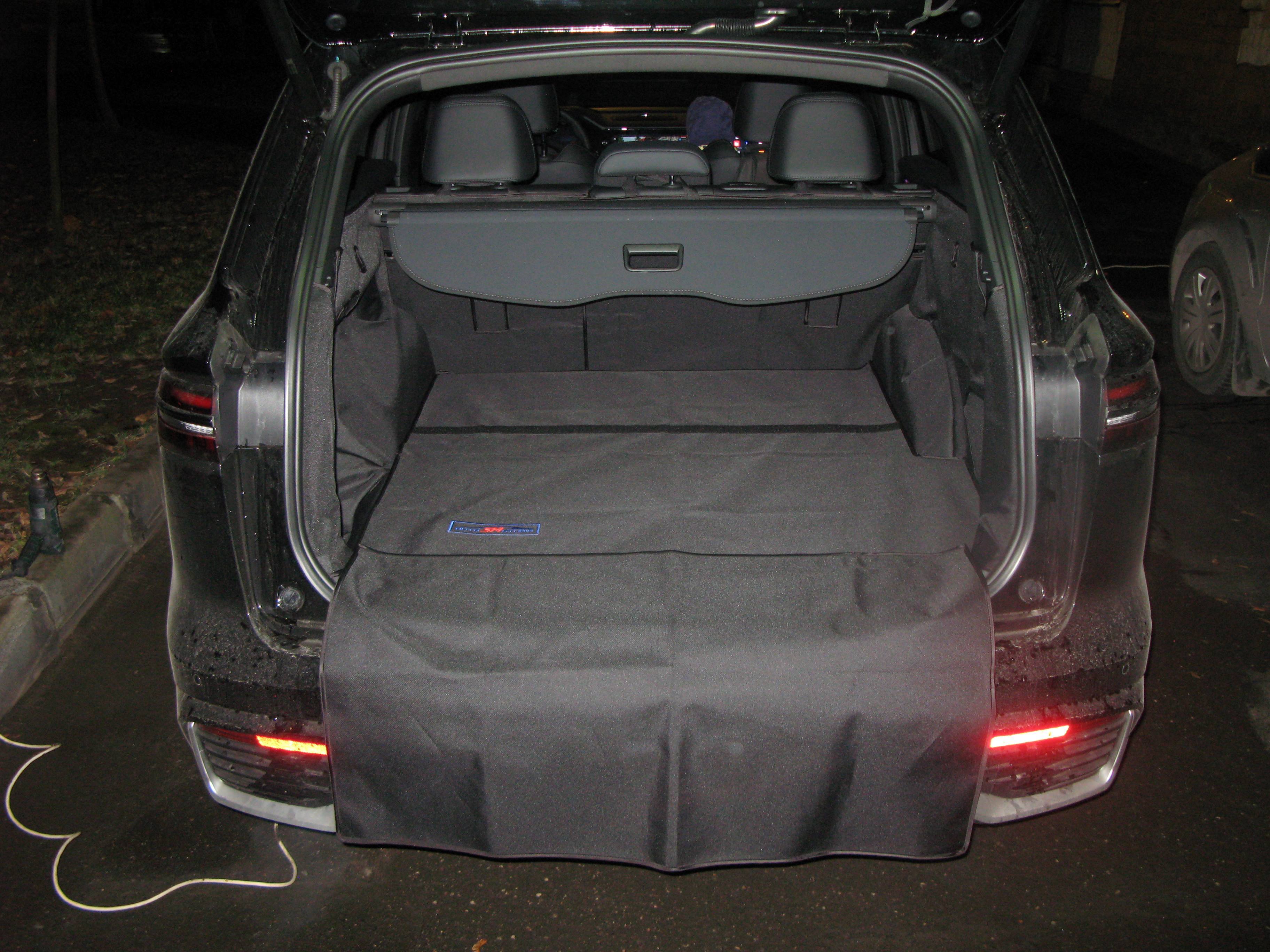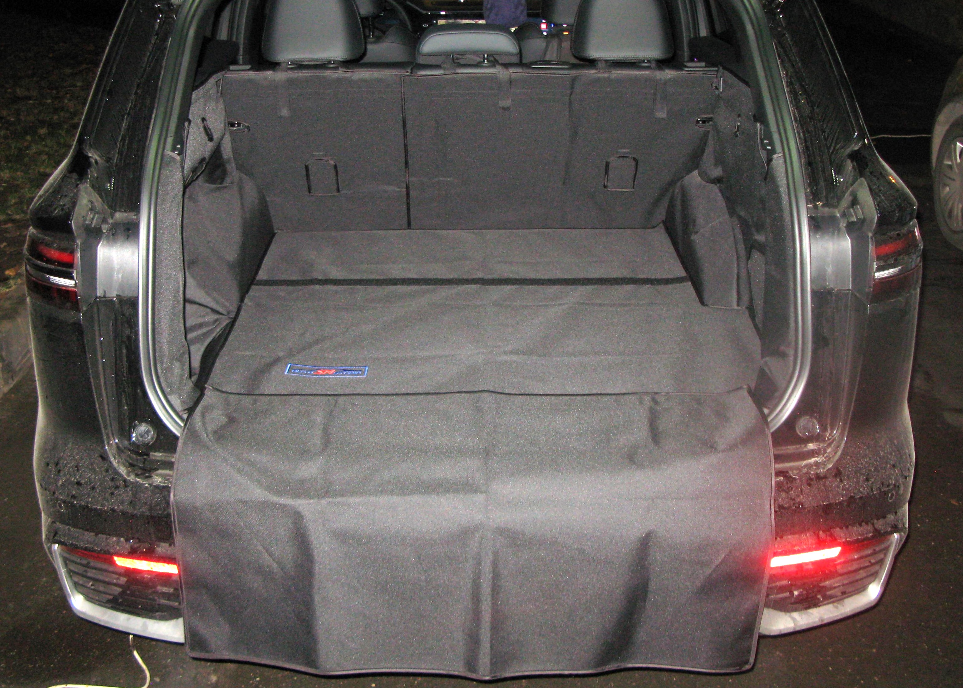 В отличии от коврика в багажник, чехол защищает не только пол багажного отделения, но и боковые стенки, спинки задних сидений и задний бампер автомобиля.