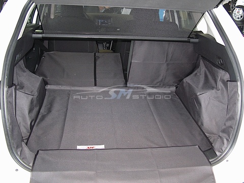 В отличии от коврика в багажник, чехол защищает не только пол багажного отделения, но и боковые стенки, спинки задних сидений и задний бампер автомобиля.