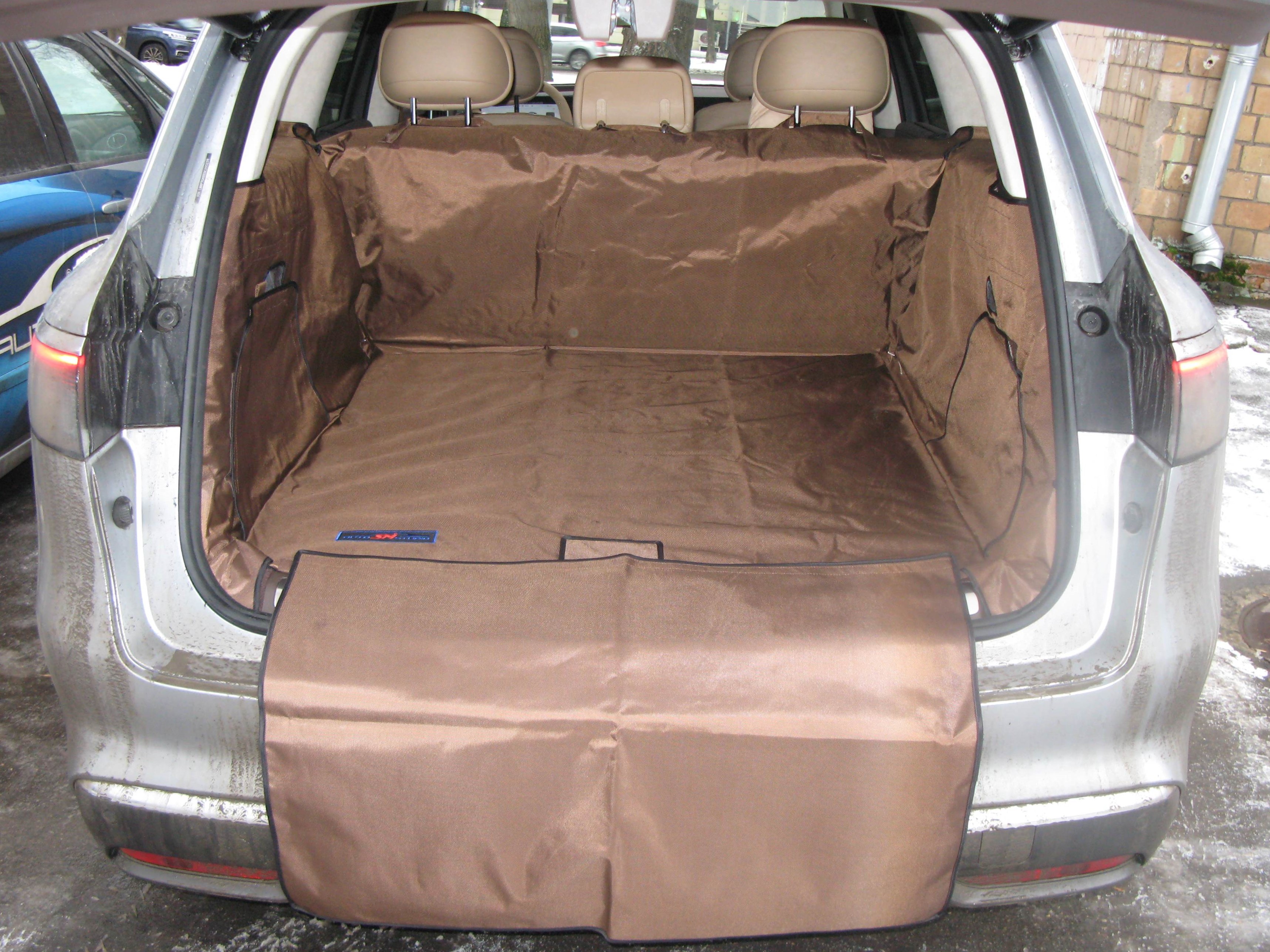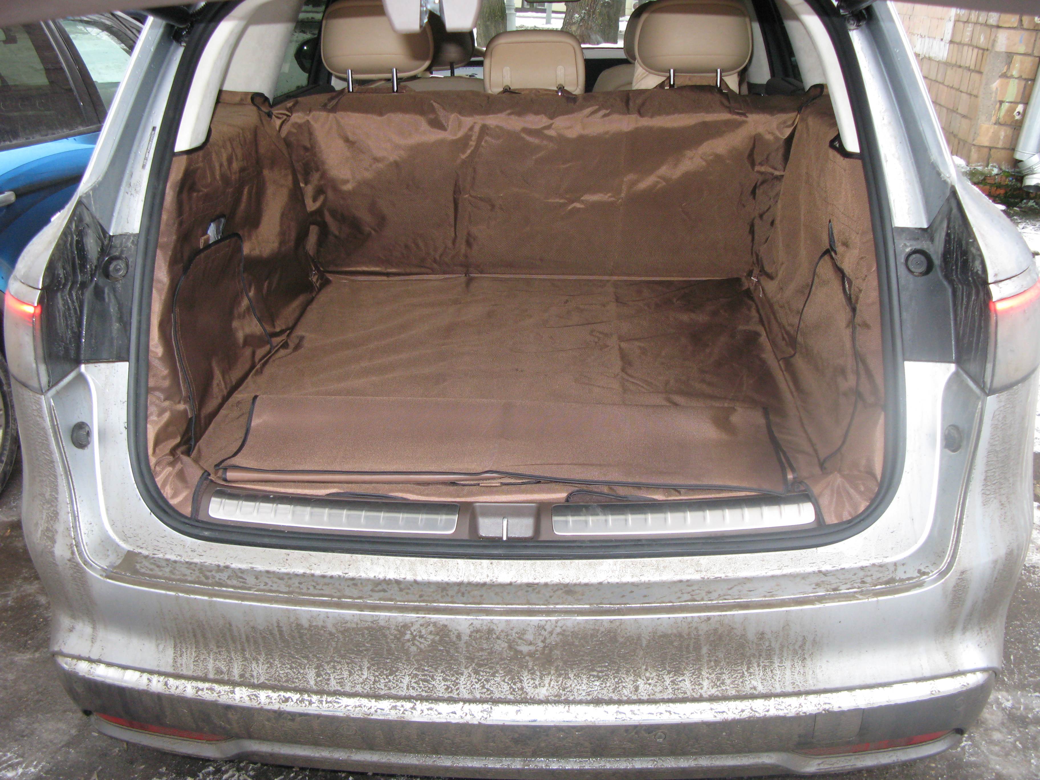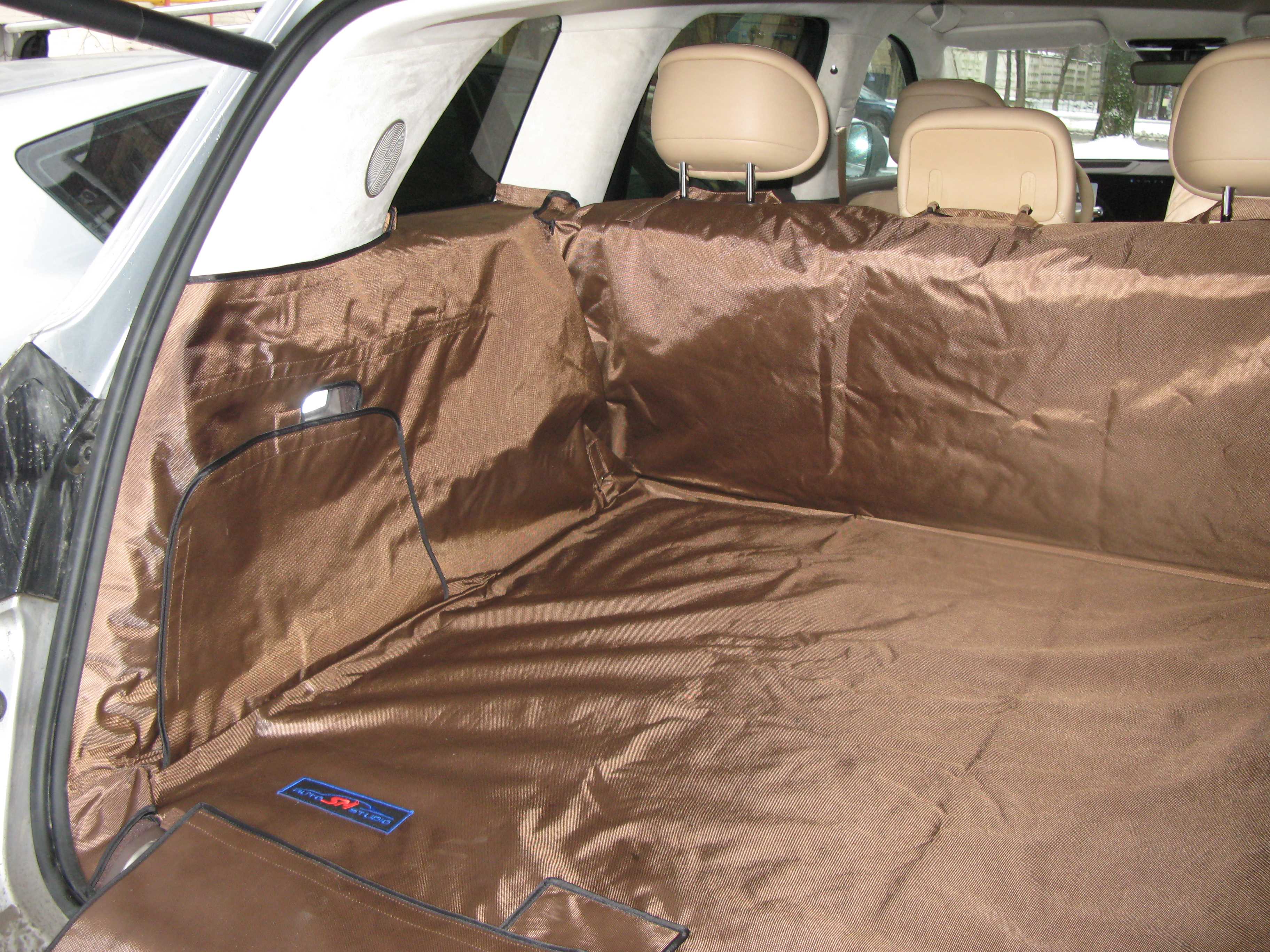 В отличии от коврика в багажник, чехол защищает не только пол багажного отделения, но и боковые стенки, спинки задних сидений и задний бампер автомобиля.